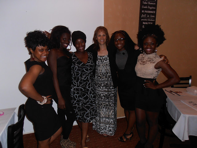 | Left to right Jessica Chea (contestant), Catherine Carr (2012 Miss Liberia-Minnesota), Decontee Sawyer (LYN Executive Director), me, Satta Kendor (contestant), Decontee Yarpah (contestant) |