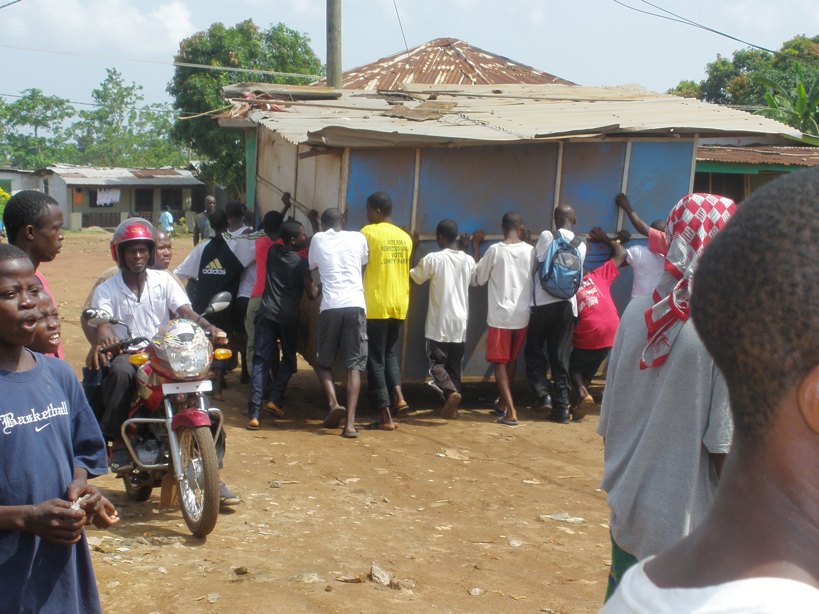 | This was taken in 2009 on the Sinkor Old Road, Monrovia, Liberia. Someone's business--their only means of livelihood--is being forcibly removed from its original location at the order of the mayor. |