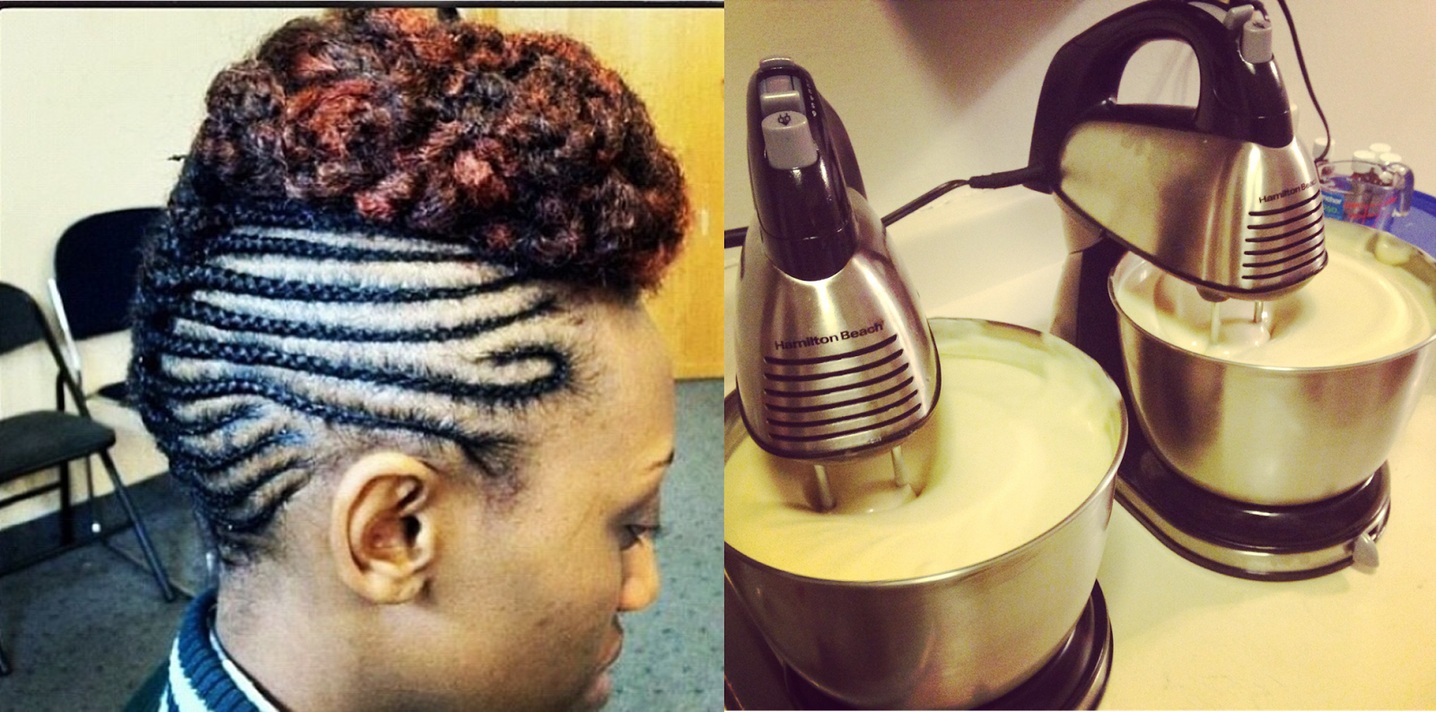 | On the left is one of Gradieh's UpDo's and on the right is a new batch of body butter being whipped up. Photos courtesy of Gradieh Wreh. |