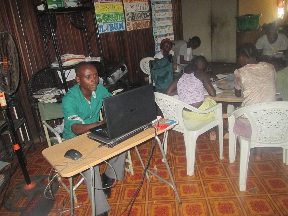 Let's stop and say Hi to Rodney, who was busy posting these photos on his Facebook page. He is our IT guy, who has fixed one of three desktopcomputers donated early this year by Agnes Fallah Kamara, founder of the Straight From the Heart Center. We hope he can get the other two working, so he can start teaching the highly demanded basic computingskills class in our center.
