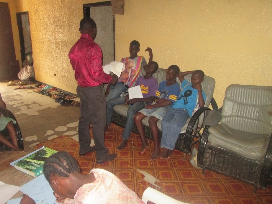 Kelvin Fomba, UDS Co-Founder and Country Director, is helping these four young boys with their homework. Kelvin wears many hats with UDS from training auto mechanics to conducting study classes with our younger students.