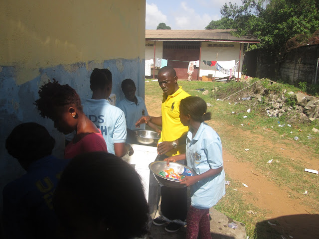 | UDS volunteers providing soft drinks and sandwiches they prepared earlier in the day. |