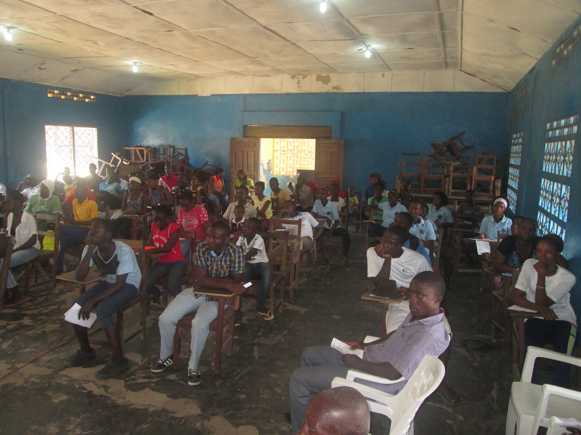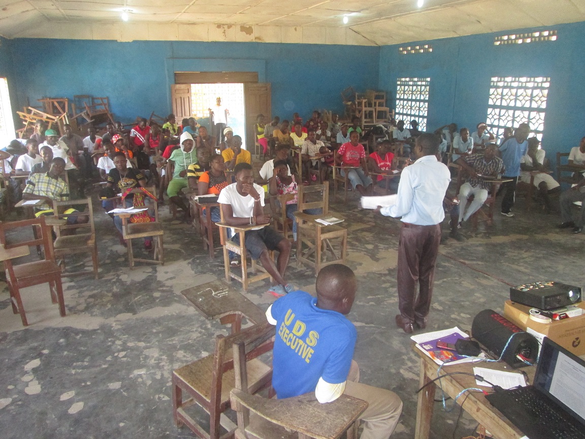 This collaborative undertaking involved many key contributors: 1) Assembly of God Mission (AGM) School Campus in Divine Town Community provided the venue. 2) Reverend Samuel Enders, Founder of African Dream Academy, supplied the projector and sound system. 3) UDS donated $290 for refreshments prepared;and served by our youth volunteers. 4) Six community leaders spoke on different topics addressing important issues as follows:
