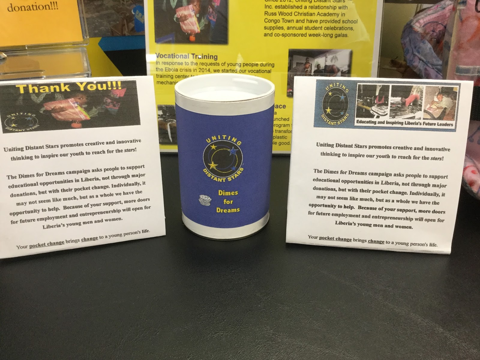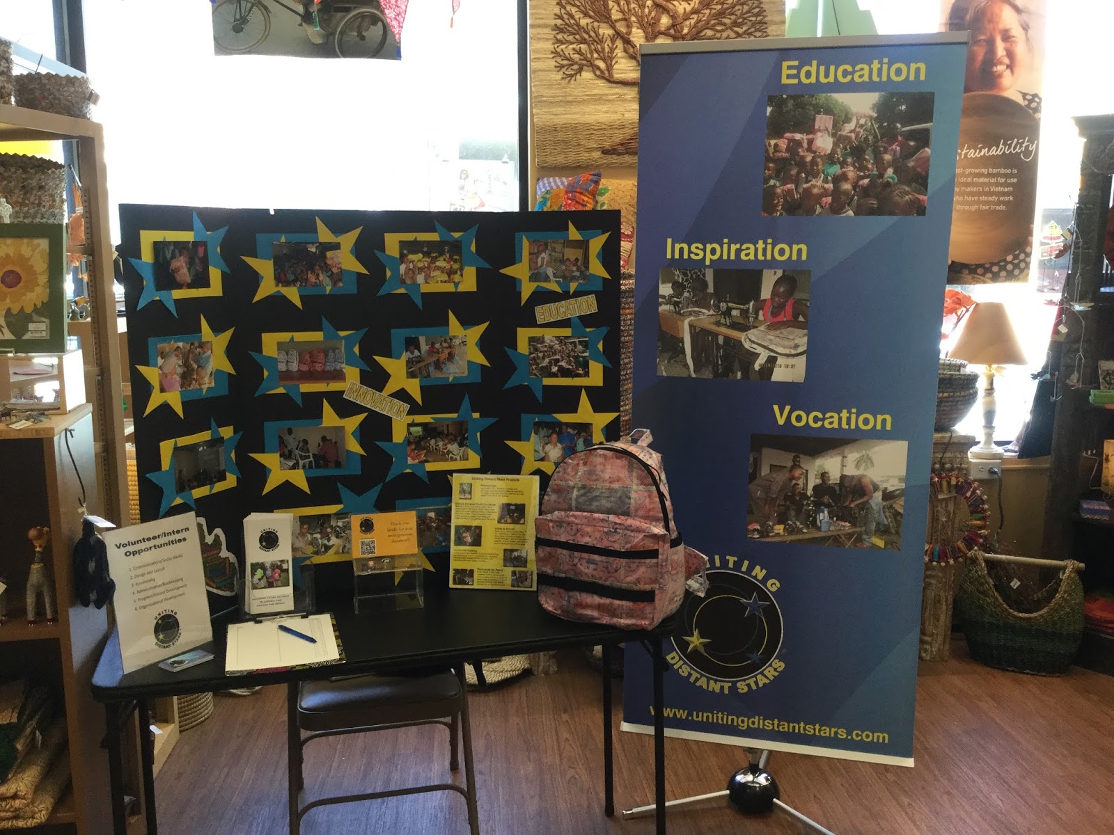 Thank you for shopping at the Ten Thousand Villages Community Shopping Event held on May 21st! Your purchases (between 12:00pm- 4:00pm) were tallied, and 15%, approximately $225, was donated to Uniting Distant Stars. We also received about $23 in cash donations. Because of your generosity, 25 students will receive school supplies from our upcoming Annual School Supplies Drive, which will be supporting three primary schools (serving 700 students) in Liberia.