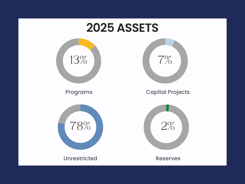 UDS 2025 Assets allocated to programs, capital projects, unrestricted funds, and reserves.